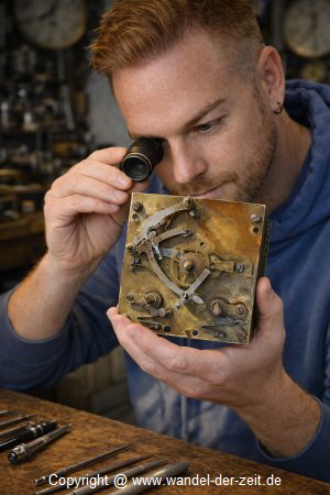 Es gibt kaum Ersatzteile, vieles muss angepasst, nachgearbeitet, oder überhaupt erst identifiziert werden. Dazu kommt: Jede Uhr ist ein Individuum.